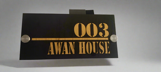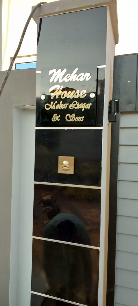 Acrylic House Nameplate with Golden Acrylic Mirror Back
