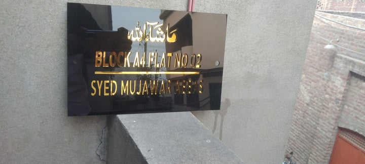 Acrylic House Nameplate with Golden Acrylic Mirror Back