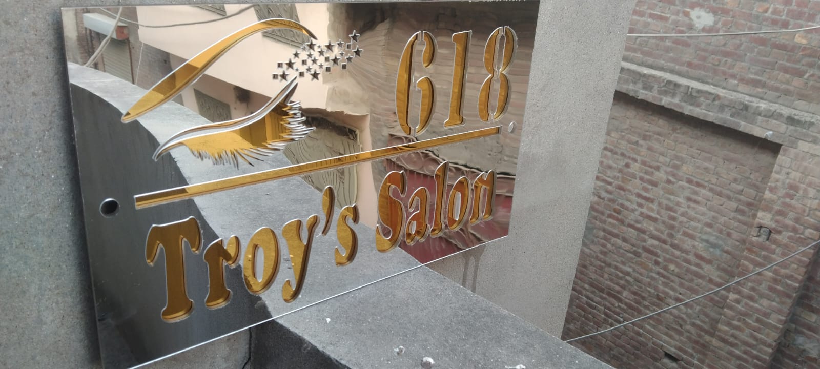 Silver Acrylic Front with Golden Mirror Back Nameplate