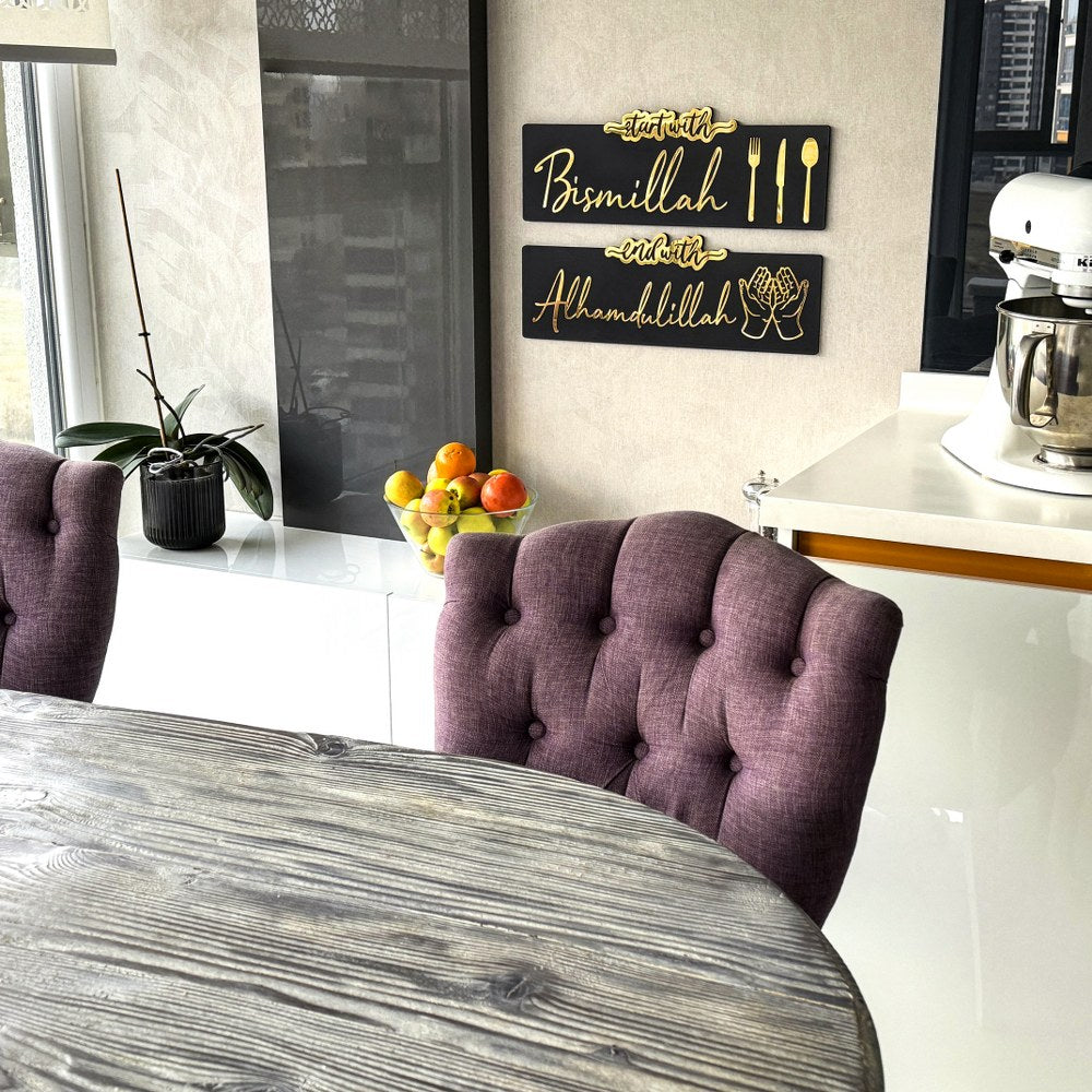 Start with Bismillah, End with Alhamdulillah Wooden Islamic Wall Art